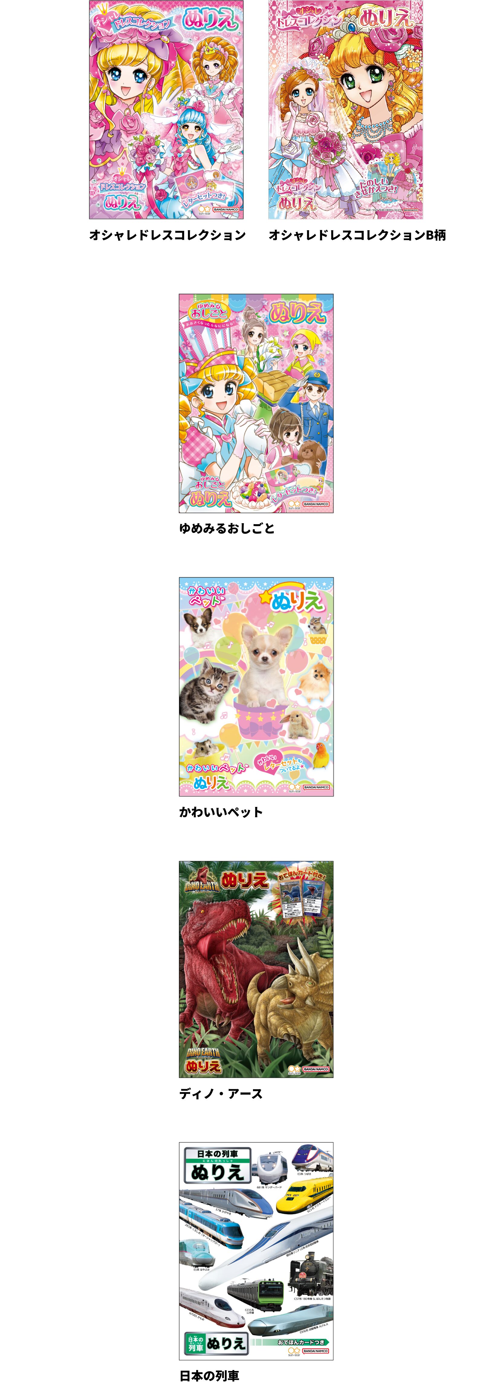【本体サイズ】W183×H257×D4mm 【本体重量】124g 【材質】紙 【内容】本文:32ページ/扉:2枚 【パッケージ】なし 【生産国】日本【JANコード】ゆめみるおしごと:4901771315071 オシャレドレスコレクション:4901771314517 かわいいペット:4901771315194 ディノ・アース:4901771315187 日本の列車:4901771315064