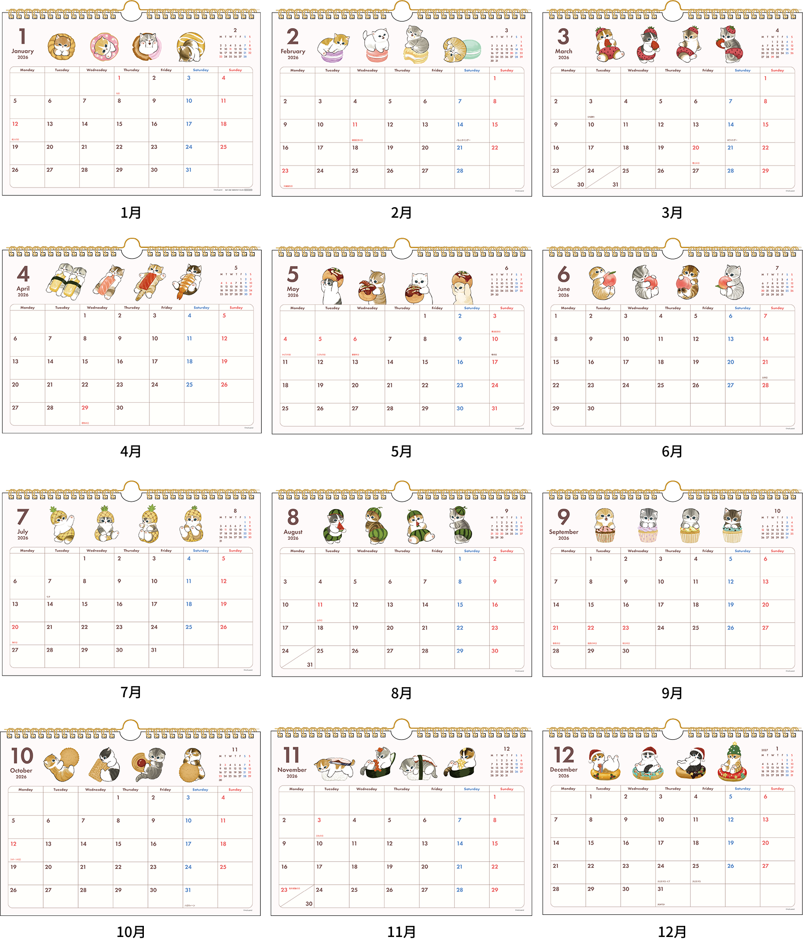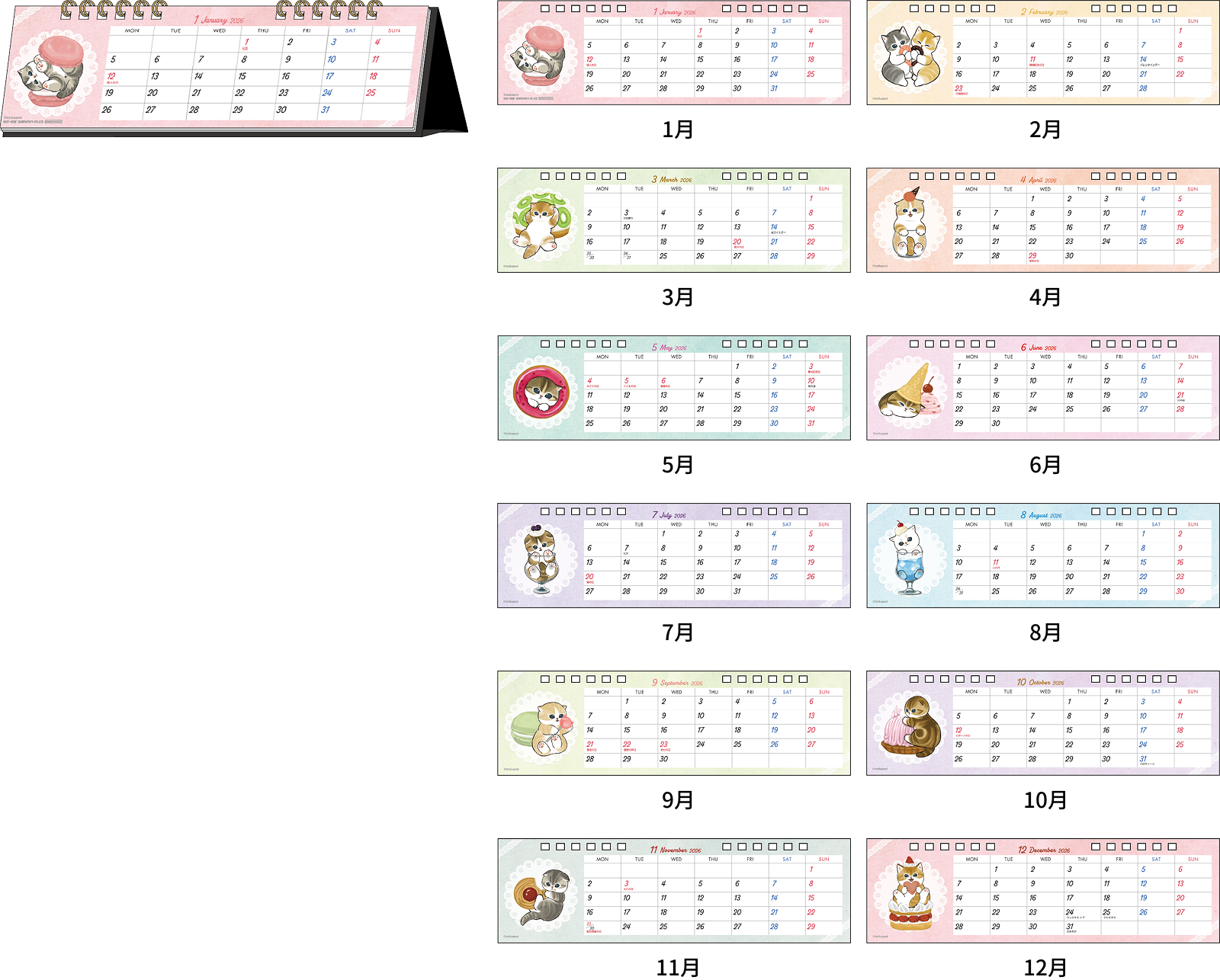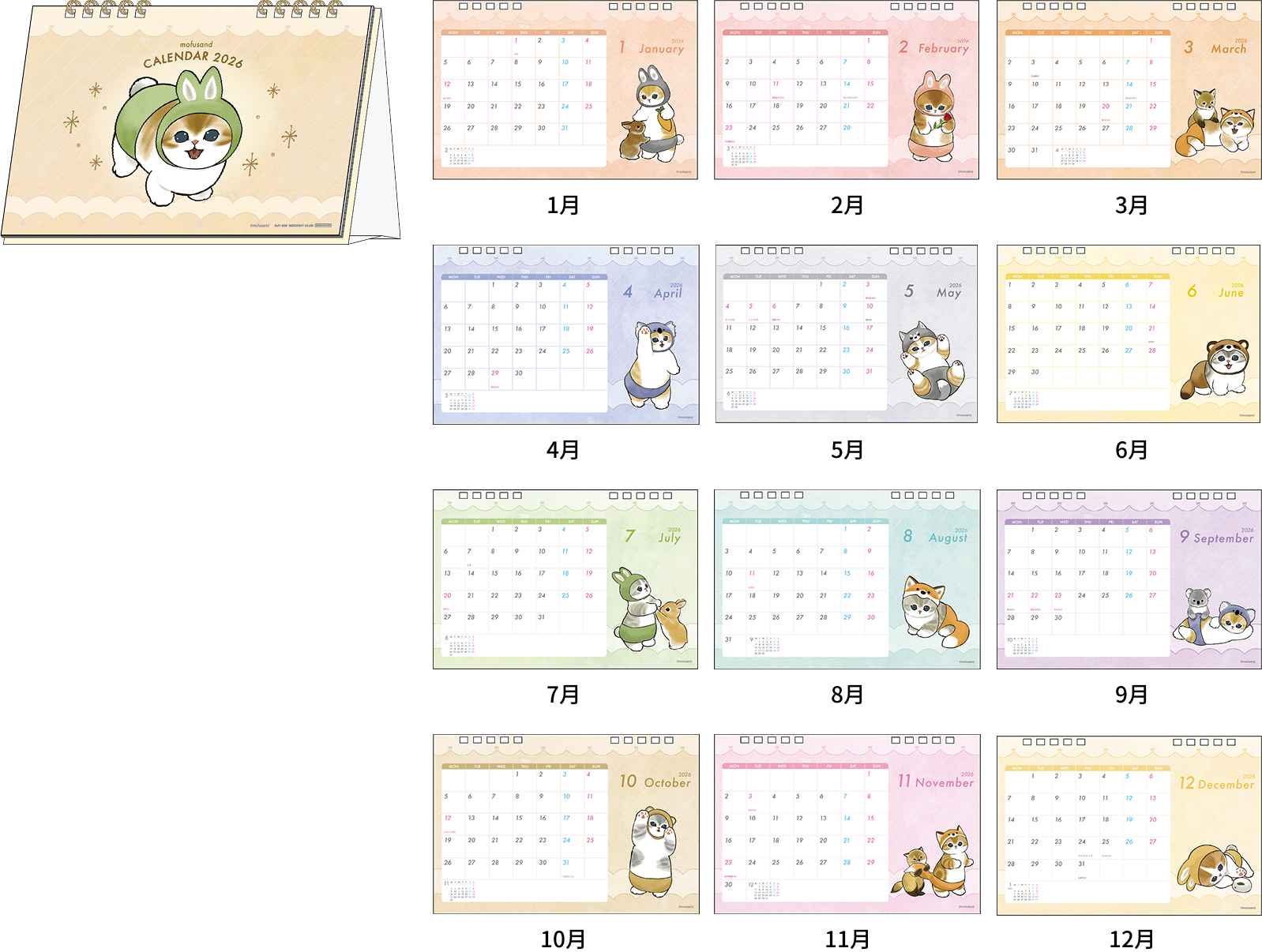 毎月いろいろなどうぶつに扮したにゃんこが登場するキュートなデザインです。