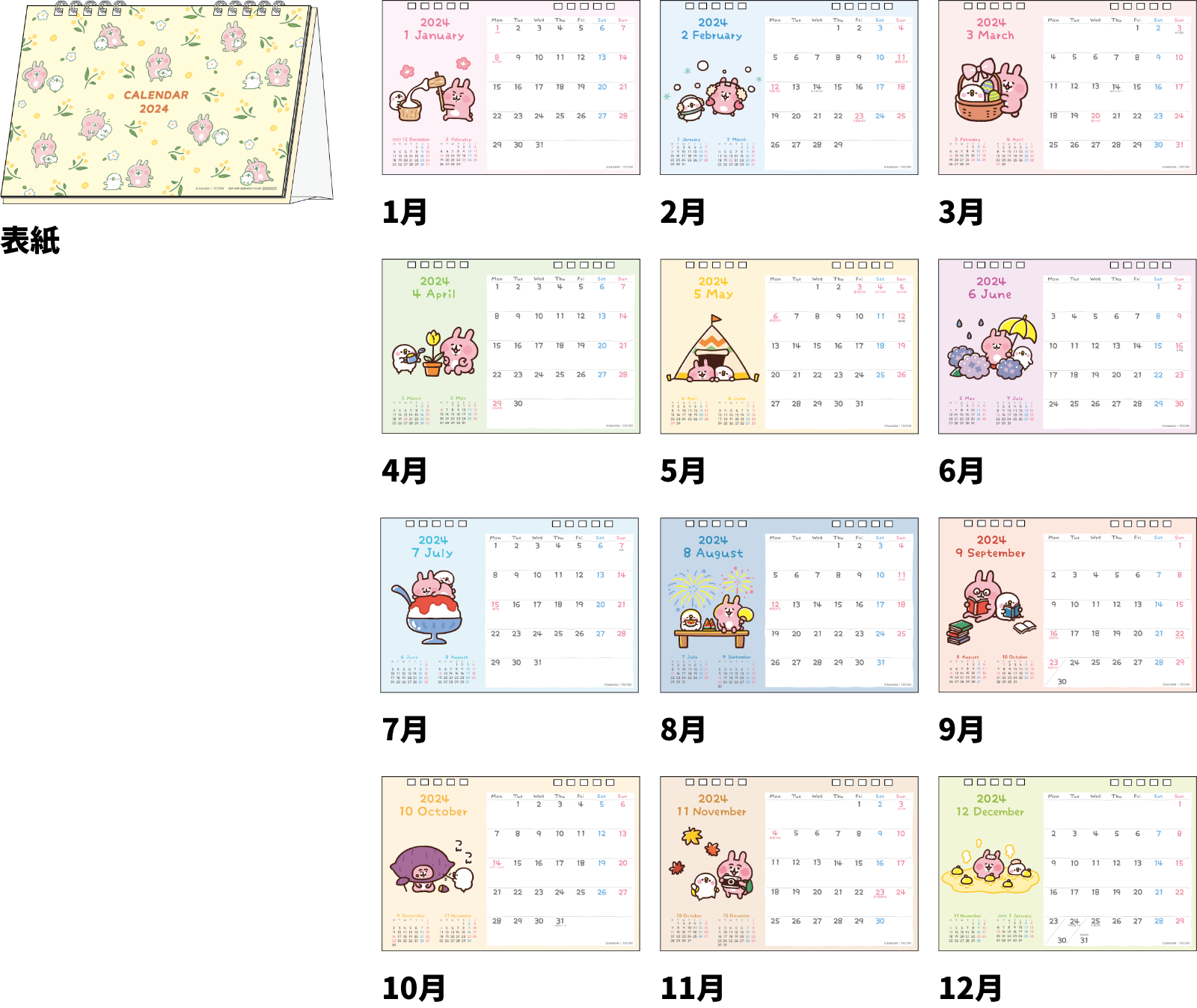 ピスケとうさぎのいろいろなシーンが見られて楽しいデザインです。