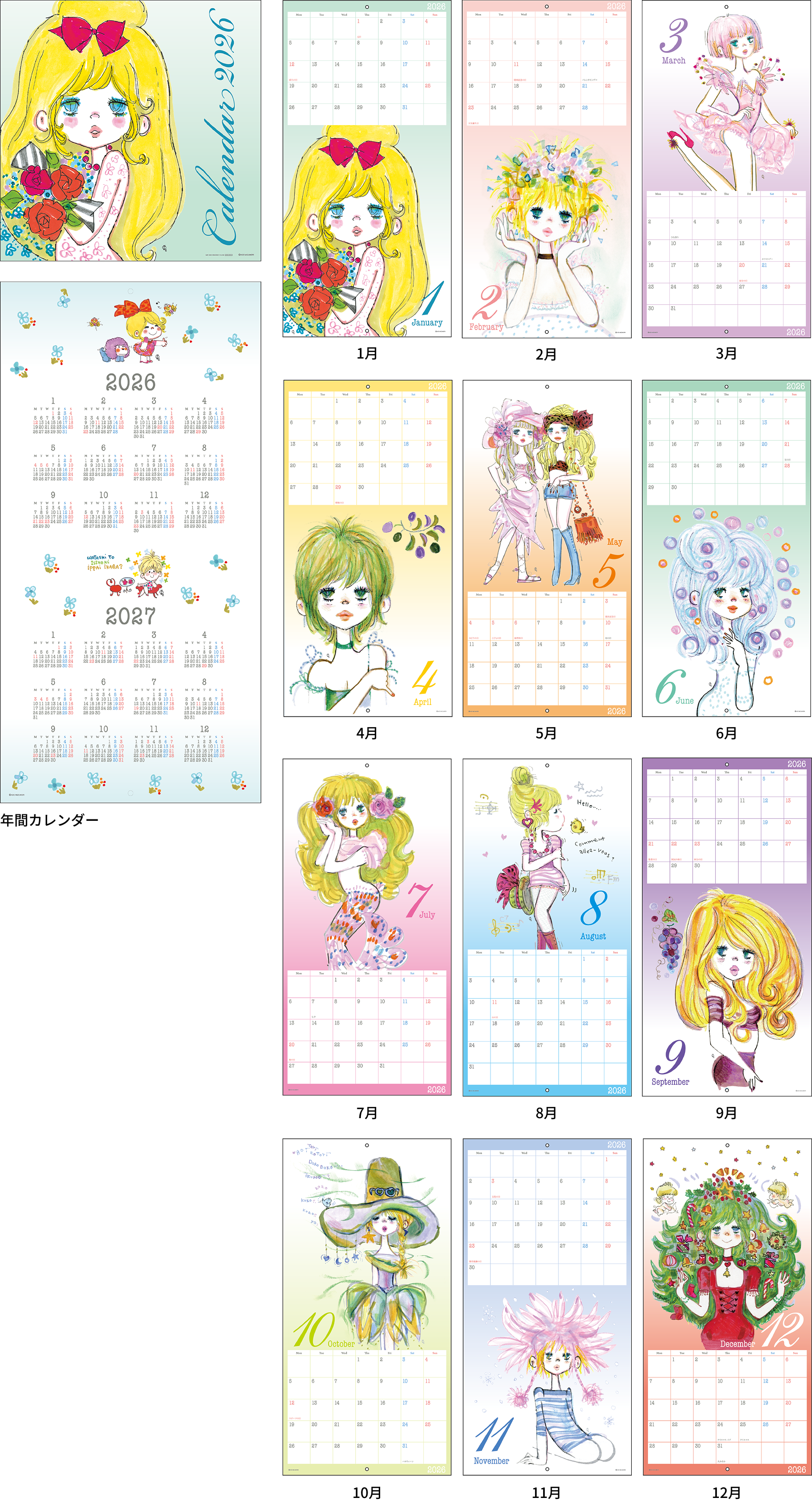 【本体サイズ】W300×H300×D3mm【材質】紙【内容】年間カレンダー:1枚 / 月間カレンダー:12枚