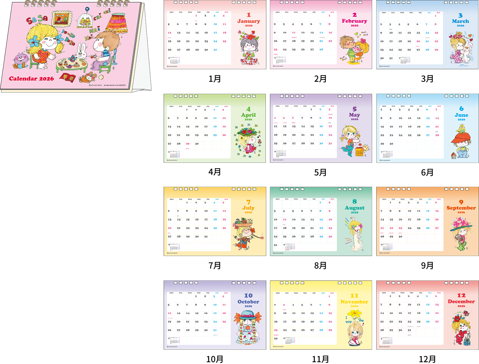【本体サイズ】W185×H130×D80mm【材質】紙・スチール【内容】月間カレンダー:12枚【パッケージ】ヘッダー付PP袋【パッケージ入サイズ】W195×H210×D10mm【パッケージ入重量】85g【生産国】日本【JANコード】4901770799759
