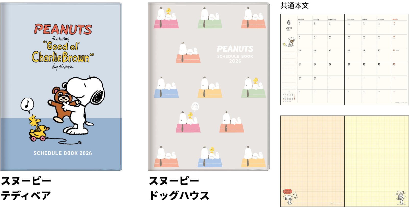【本体サイズ】W132×H188×D6mm【本体重量】130g【材質】表紙:PVC/本文:紙【表紙仕様】梨地フルカラーカバー【内容】カバー:ペンホルダー付/本文:64ページ カレンダー・年間プラン・月間スケジュール(2025年10月〜2026年12月・六曜入)・メモ・路線図【パッケージ】個袋入【生産国】日本 【JANコード】テディベア:4901770133591 ドッグハウス:4901770133607