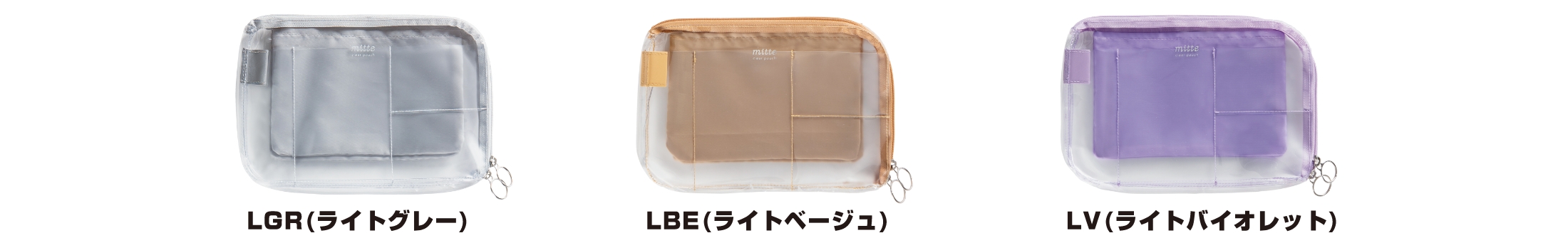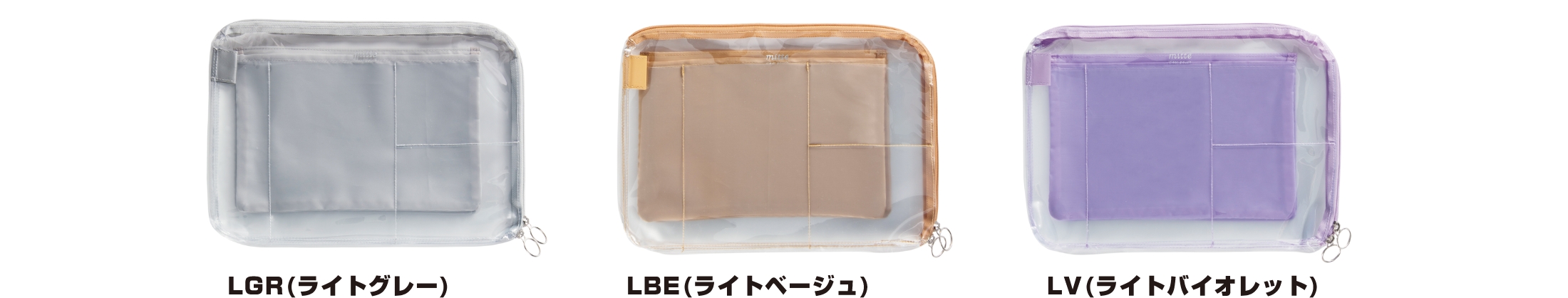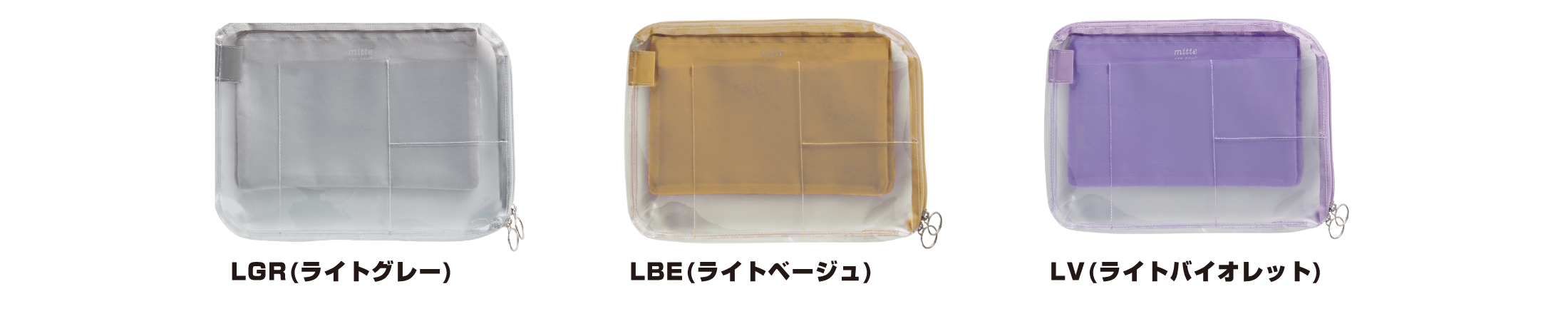 【本体サイズ】W260×H180×D20mm 【本体重量】128g 【材質】PVC・ポリエステル 【パッケージ】なし(タグ・ループ付) 【生産国】中国【JANコード】LGR(ライトグレー):4901770662343 LBE(ライトベージュ):4901770662350 LV(ライトバイオレット):4901770662367