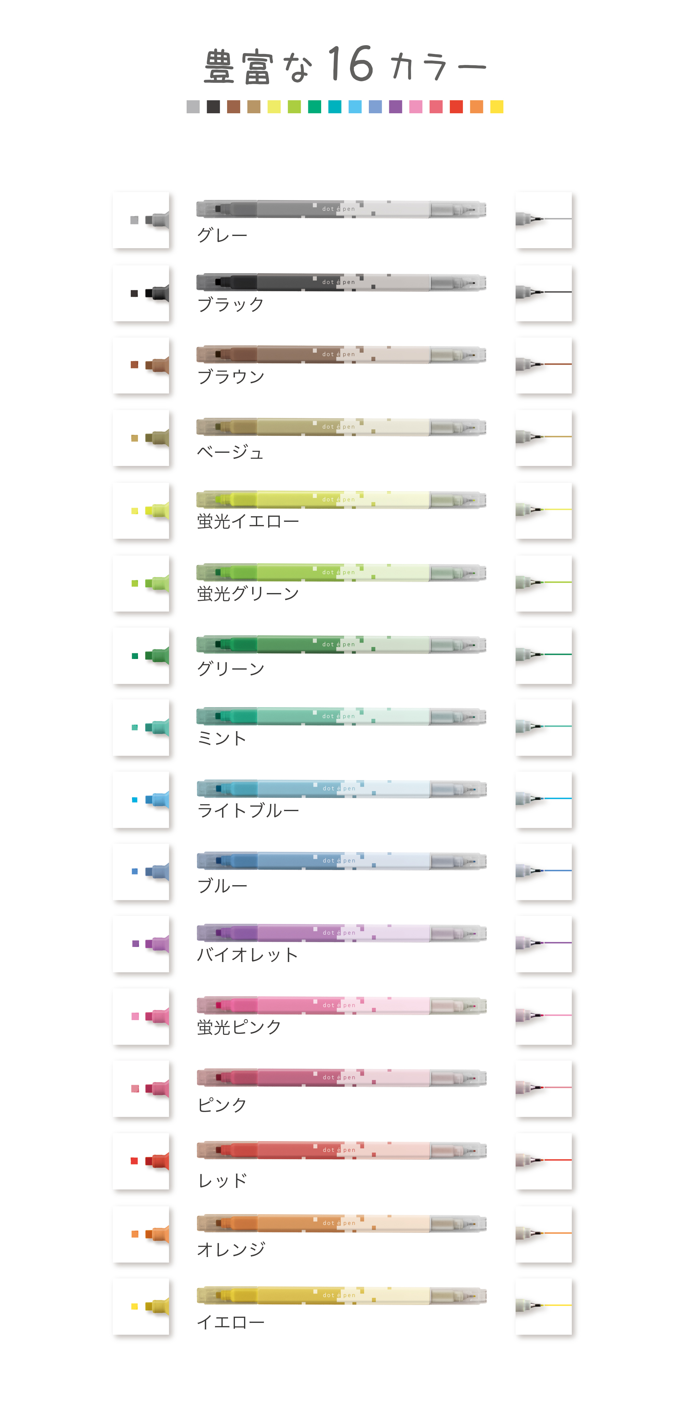 四角マーカー dot e pen (ドット・エ・ペン) ¥220- (消費税込)