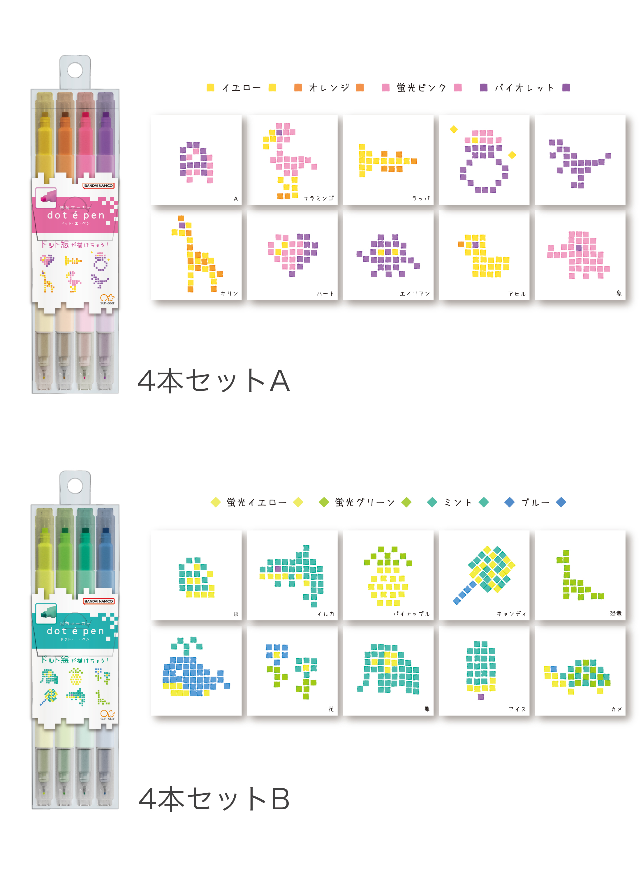 四角マーカー dot e pen (ドット・エ・ペン)4本セット ¥880- (消費税込)
