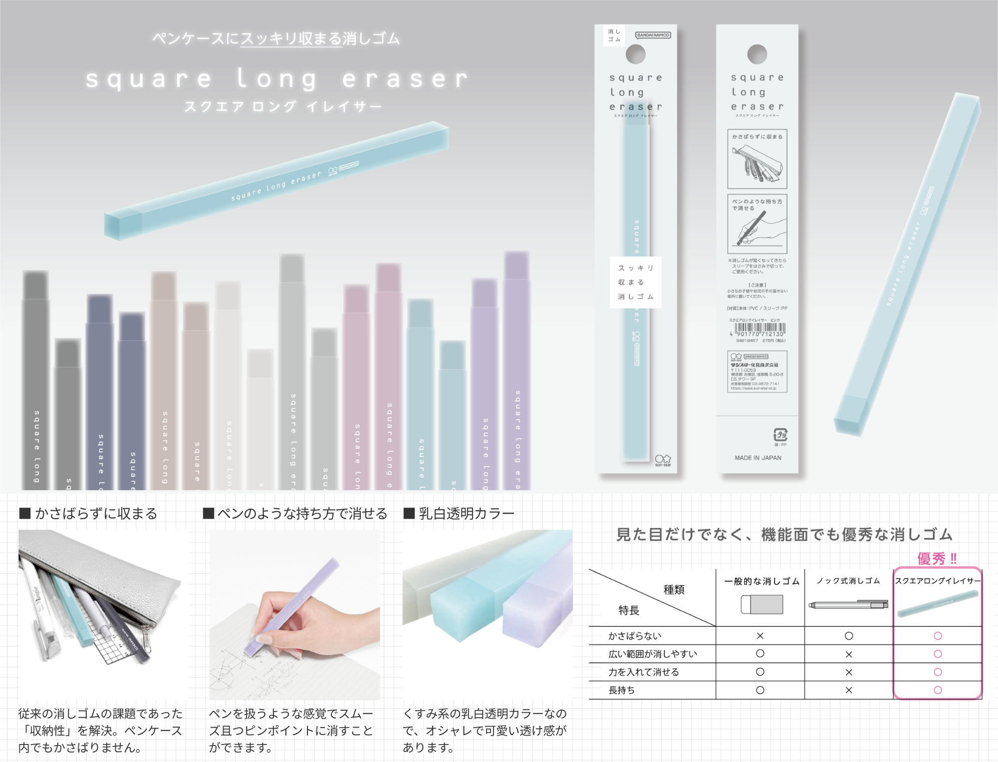 スクエアロングイレイサー ¥275-(消費税込)