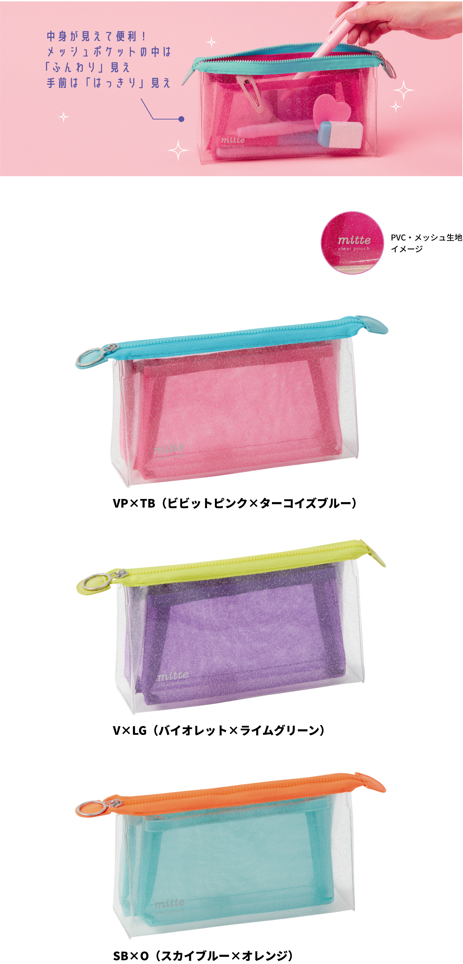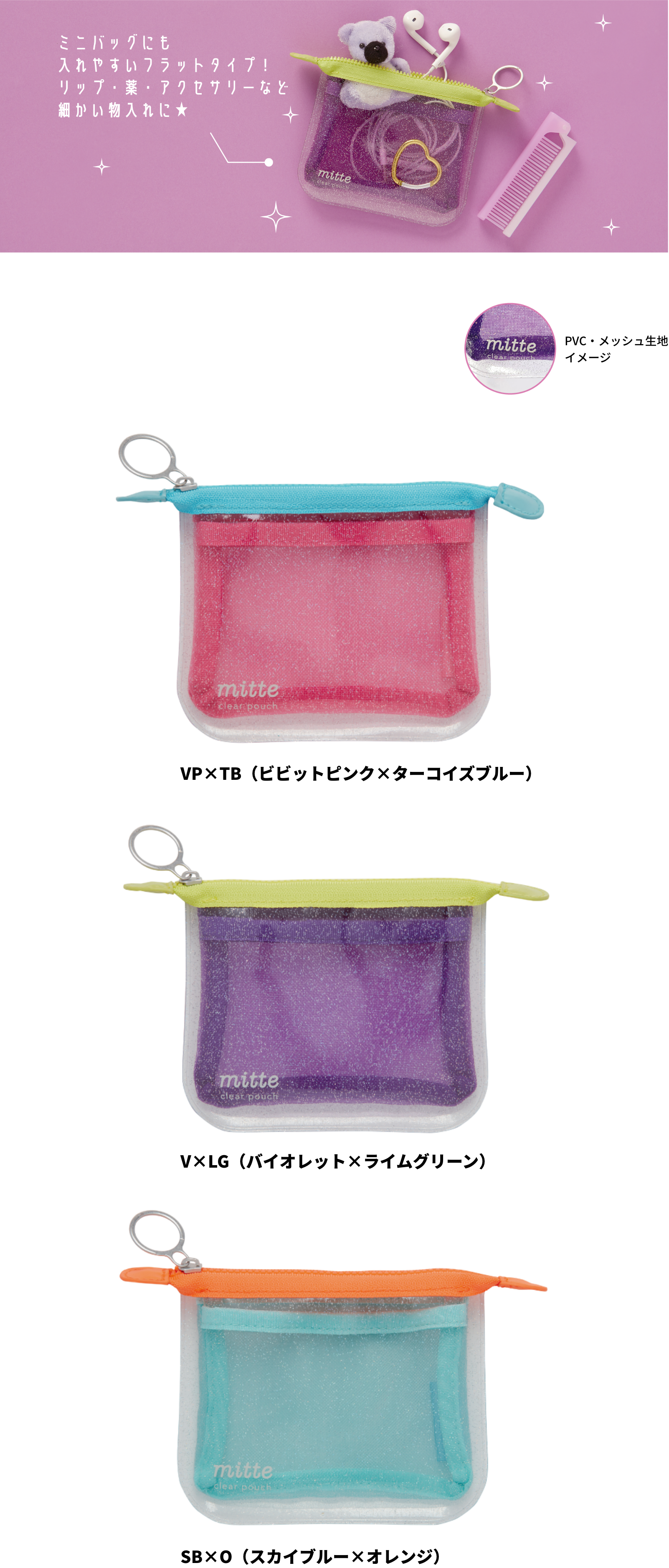 ラメクリアポーチ mitte メッシュ マチ ¥1,760-(消費税込)