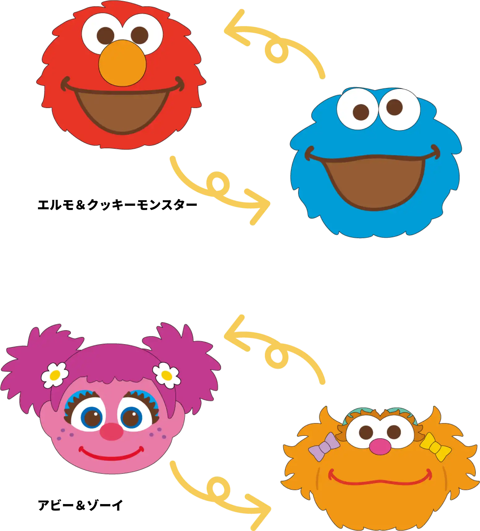 【本体サイズ】約W58×H76mm以内 【本体重量】約2g 【材質】合成紙【内容】2柄 各1枚 計2枚 【パッケージ】台紙付PP袋 【生産国】日本【JANコード】エルモ&クッキーモンスター:4901770858883 アビー&ゾーイ:4901770858890 エルモ&オスカー:4901770858906 クッキーモンスター&アビー:4901770858913
