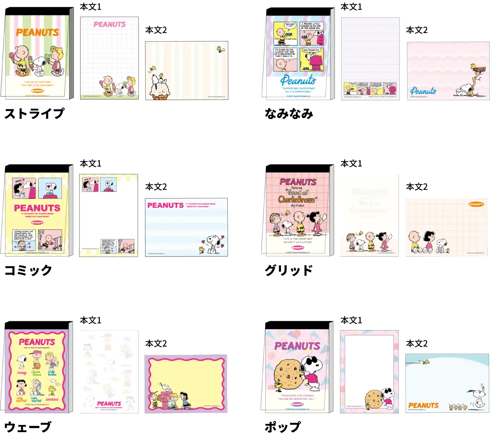 【本体サイズ】W60×H85×D11mm 【本体重量】40g【材質】PET・紙 【内容】本文:2柄 各40枚 計80枚 【パッケージ】なし 【生産国】日本【JANコード】ストライプ:4901770935997 なみなみ:4901770936000 コミック:4901770936017 グリッド:4901770936024 ウェーブ:4901770936031 ポップ:4901770936048