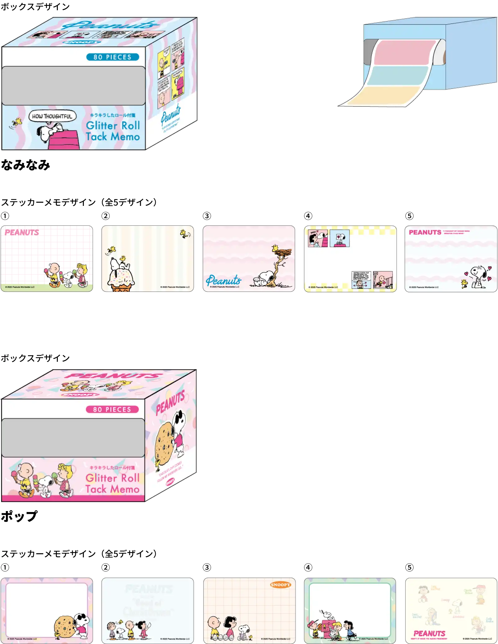 【ステッカーメモサイズ】W63×H45mm 【材質】ステッカーメモ:PET / 箱:紙・PP【内容】ステッカーメモ 5柄 各16枚 計80枚 【パッケージ】箱入れ 【パッケージ入サイズ】W74×H55×D63mm【パッケージ入重量】約60g 【生産国】中国【JANコード】なみなみ:4901770936079 ポップ:4901770936086