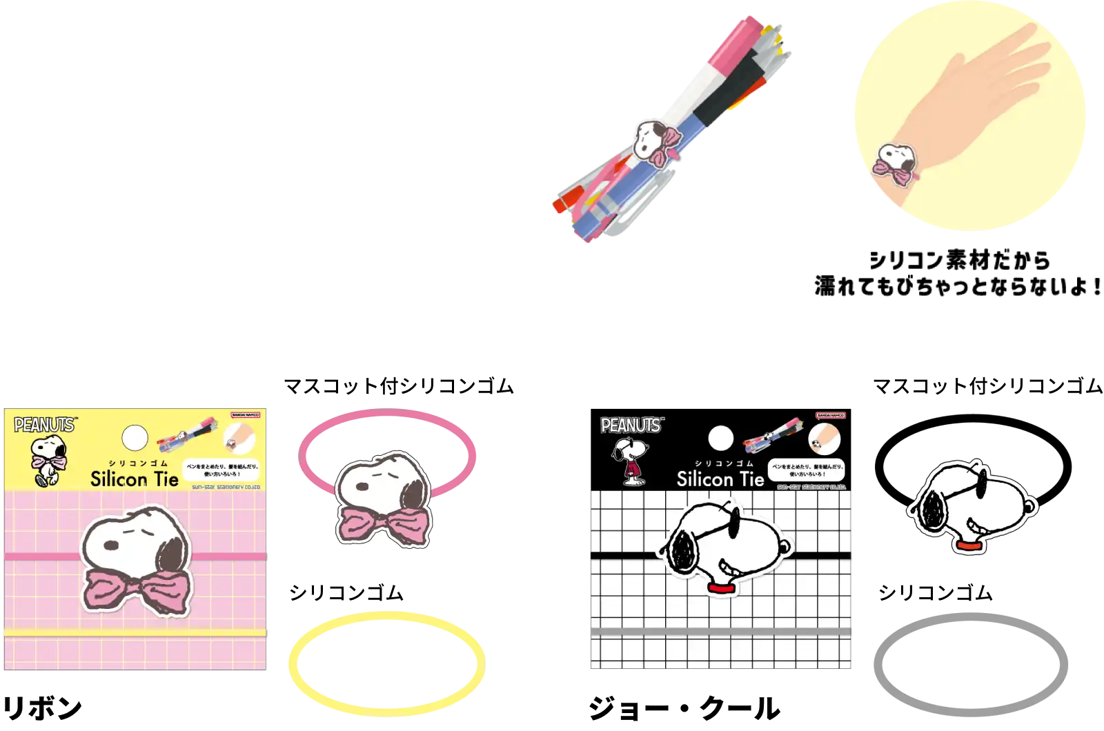 【本体サイズ】ゴム:φ3mm 直径57mm / マスコット:約W35×H35×D3mm以内 【本体重量】1個あたり:約10g【材質】シリコーン 【内容】2個 【パッケージ】台紙付PP袋 【パッケージ入サイズ】約W80×H80×D5mm【パッケージ入重量】約13g 【生産国】中国【JANコード】リボン:4901770936208 ジョー・クール:4901770936215