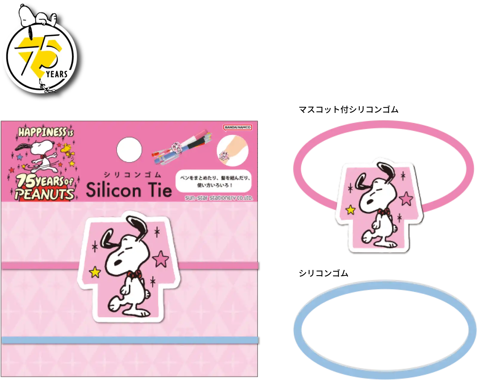 【本体サイズ】ゴム:φ3mm 直径57mm / マスコット:約W35×H35×D3mm以内【本体重量】1個あたり:約10g 【材質】シリコーン 【内容】2個【パッケージ】台紙付PP袋 【パッケージ入サイズ】約W80×H80×D5mm【パッケージ入重量】約13g 【生産国】中国【JANコード】4901770936390