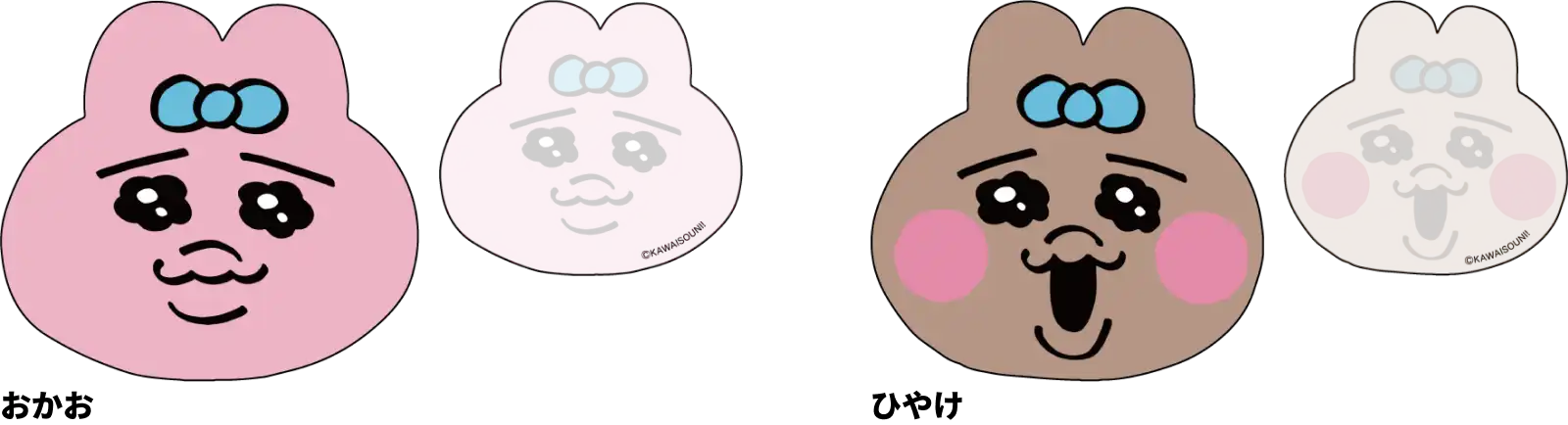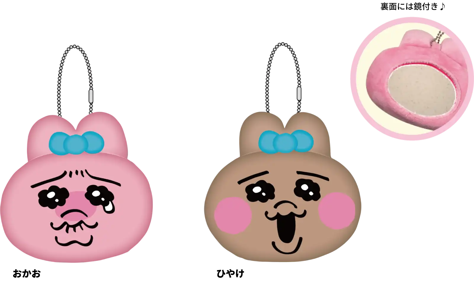 【本体サイズ】W120×H100×D40mm 【本体重量】約45g 【材質】ポリエステル・アクリル【パッケージ】なし(タグ・ループ付) 【生産国】中国【JANコード】おかお:4901770976723 ひやけ:4901770976761