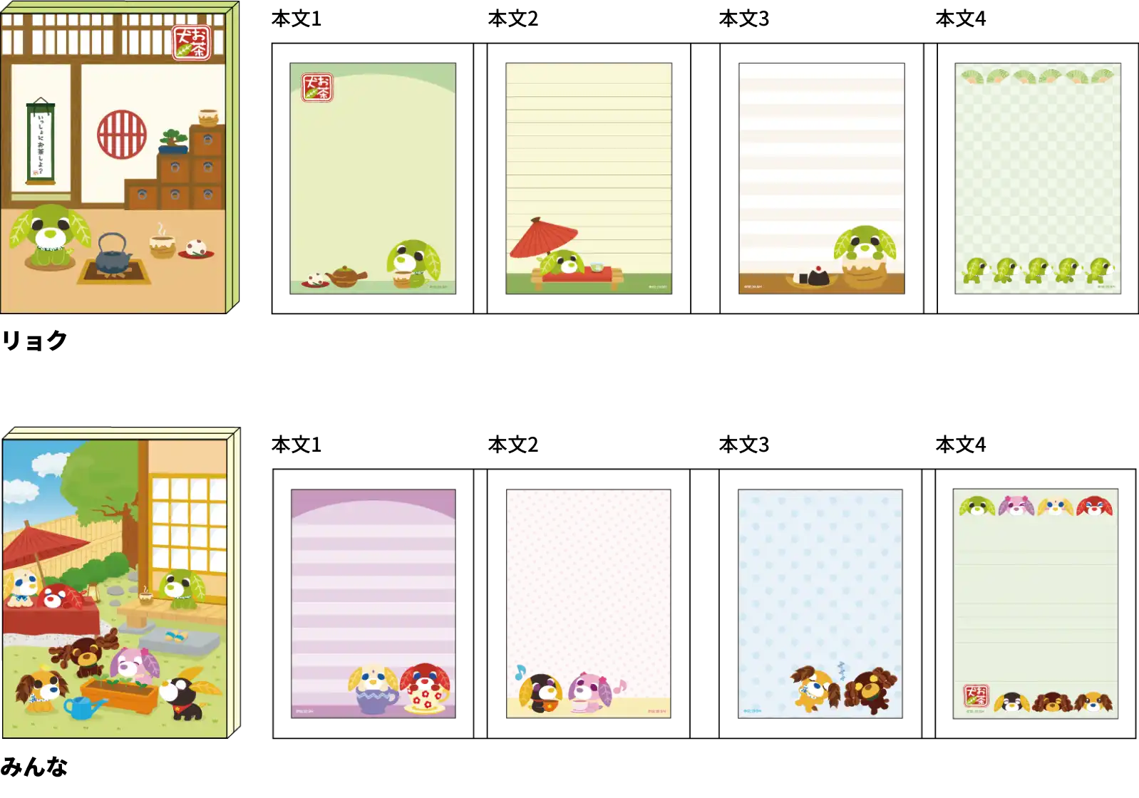 【本体サイズ】W97×H129×D14mm 【本体重量】85g 【材質】紙 【内容】本文:4柄 各20枚 計80枚【パッケージ】ヘッダー袋 【パッケージ入サイズ】約W100×H160×D15mm 【パッケージ入重量】90g 【生産国】日本【JANコード】リョク:4901770035826 みんな:4901770035833