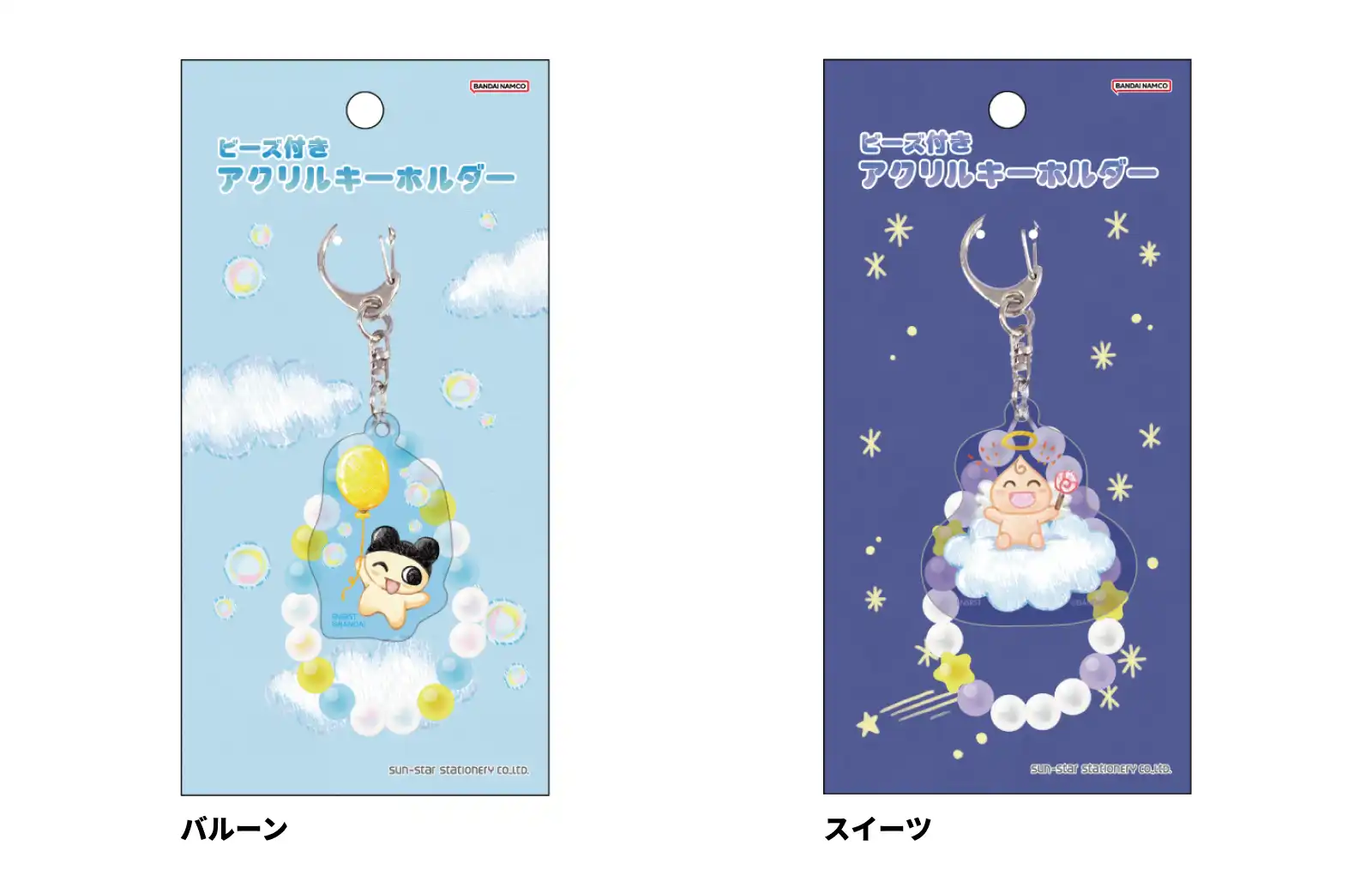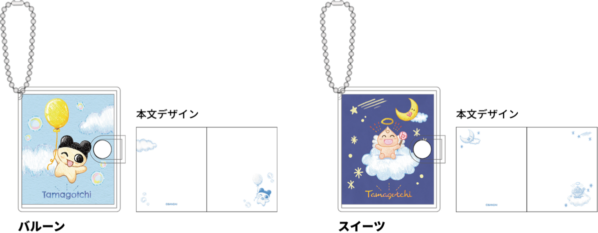 【本体サイズ】約W50×H120×D12mm 【材質】アクリル ・ PS ・ 鉄【パッケージ】台紙付PP袋 【パッケージ入サイズ】約W80×H160×D13mm 【パッケージ入重量】約17g 【生産国】中国【JANコード】バルーン:4901770018775 スイーツ:4901770018782