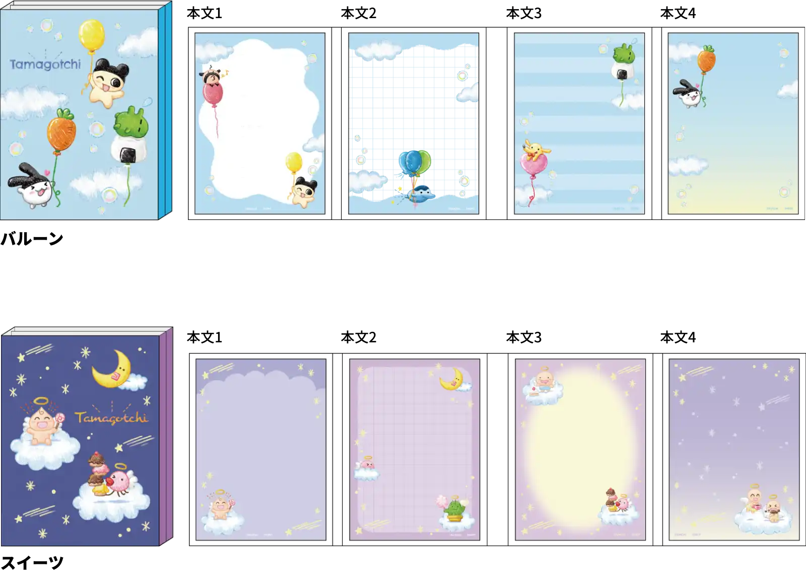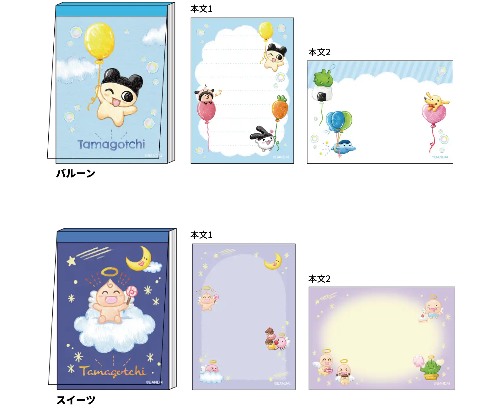 【本体サイズ】W97×H129×D14mm 【本体重量】85g 【材質】紙 【内容】本文 : 4柄 各20枚 計80枚【パッケージ】ヘッダー袋 【パッケージ入サイズ】約W100×H160×D15mm 【パッケージ入重量】90g 【生産国】日本【JANコード】バルーン:4901770015316 スイーツ:4901770015323
