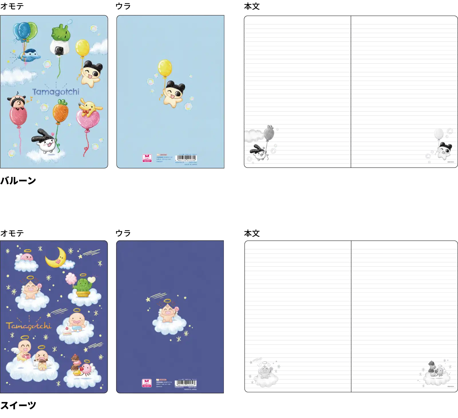 【本体サイズ】W148×H210×D3mm 【本体重量】78g 【材質】紙【内容】本文 : 24枚(48ページ) 【パッケージ】なし 【生産国】日本【JANコード】バルーン:4901770015330 スイーツ:4901770015347