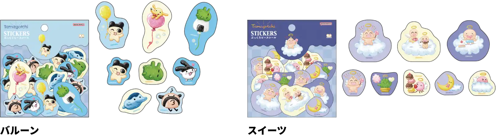 【本体サイズ】大 : W40×H40×D4mm程度/小 : W25×H25×D2mm程度【材質】PVC 【内容】シール大 : 3柄 各1枚 計3枚 /シール小 : 5柄 各4枚 計20枚 【パッケージ】台紙付PP袋【パッケージ入サイズ】W102×H110×D10mm 【パッケージ入重量】約15g 【生産国】中国【JANコード】バルーン:4901770016481 スイーツ:4901770016498