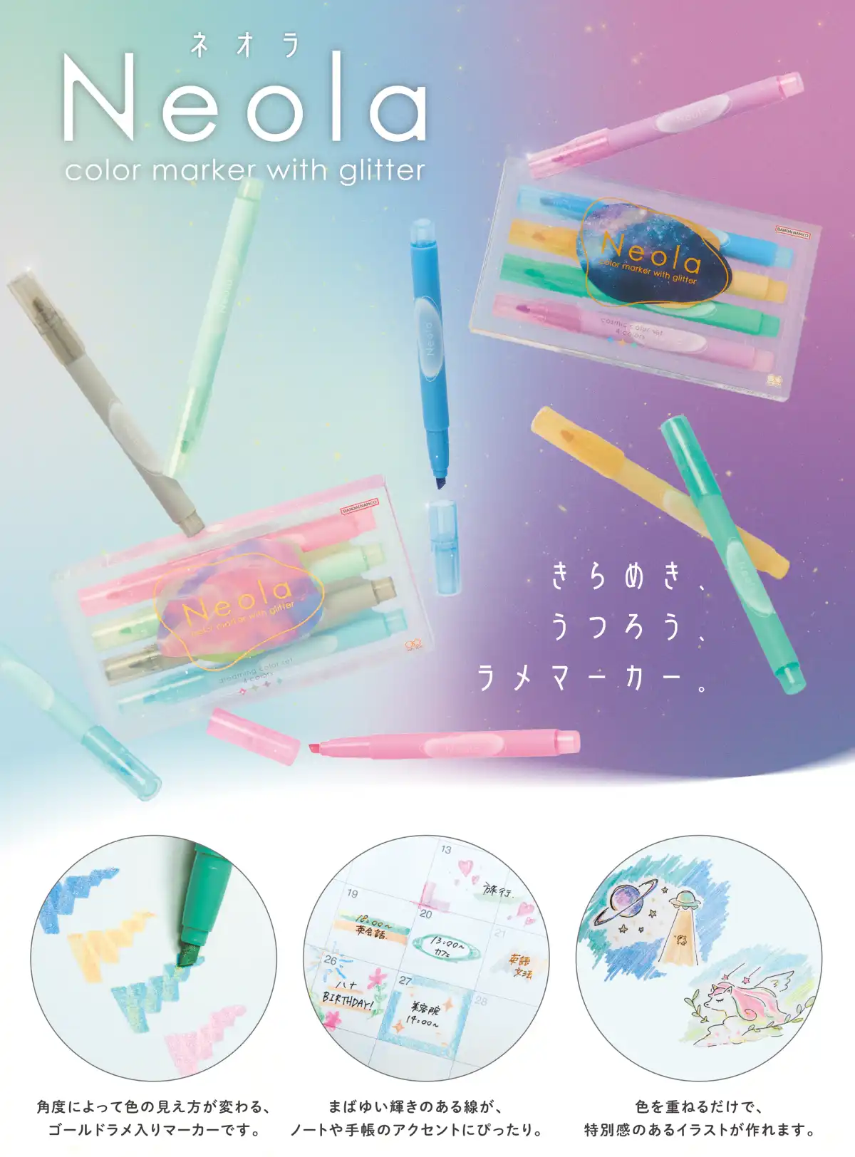 ラメマーカー N e o l a(ネオラ) 4 本セット ¥1,100-(消費税込)