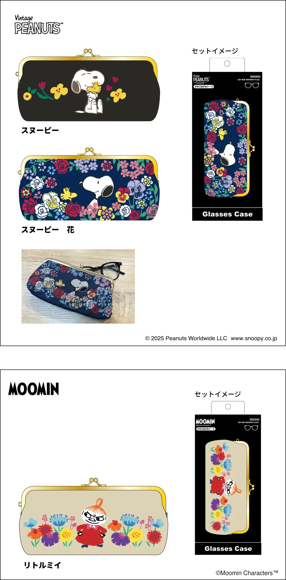 大きく開くがま口で、メガネが出し入れしやすい形状です。