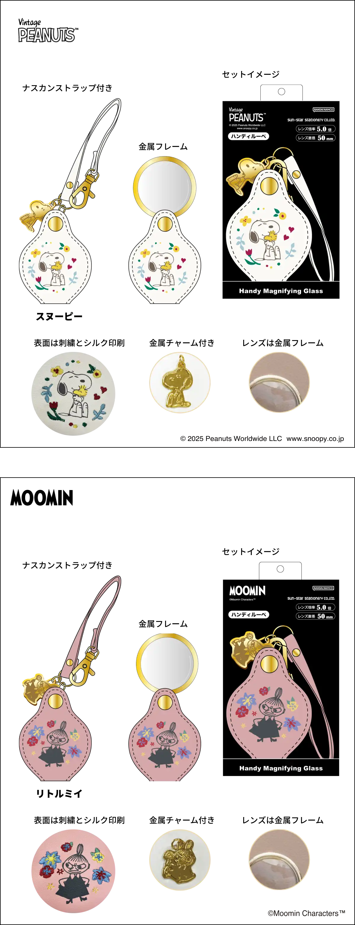 【本体サイズ】約W58×H180×D10mm(ルーペ本体:約W58×H75×D10mm)【本体重量】約45g【材質】PU・ポリエステル・ガラス・亜鉛合金・スチール【パッケージ】ヘッダー付PET箱 【パッケージ入サイズ】約W85×H140×D17mm【パッケージ入重量】約70g【生産地】中国【JANコード】スヌーピー:4901770039091 リトルミイ:4901770039152