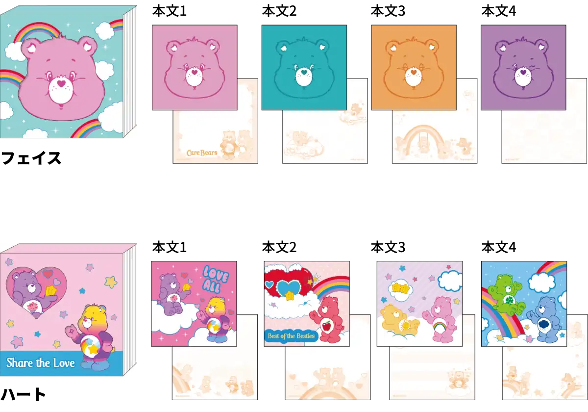 【本体サイズ】W82×H82×D8mm 【本体重量】50g 【材質】紙【内容】4柄各20枚計80枚 【パッケージ】PP袋 【生産国】日本【JANコード】フェイス:4901770042732 ハート:4901770042749