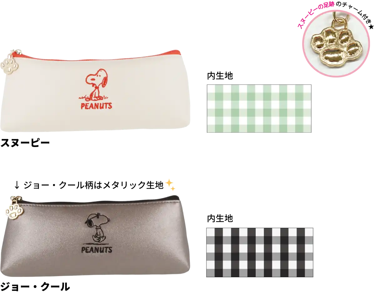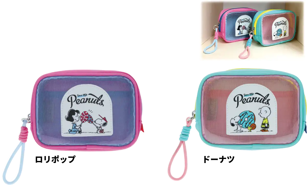 【本体サイズ】約W180×H70×D35mm 【本体重量】約40g【材質】PVC・ポリエステル 【パッケージ】なし(タグ・ループ付)【生産国】中国【JANコード】スヌーピー:4901770047959 ジョー・クール:4901770047966