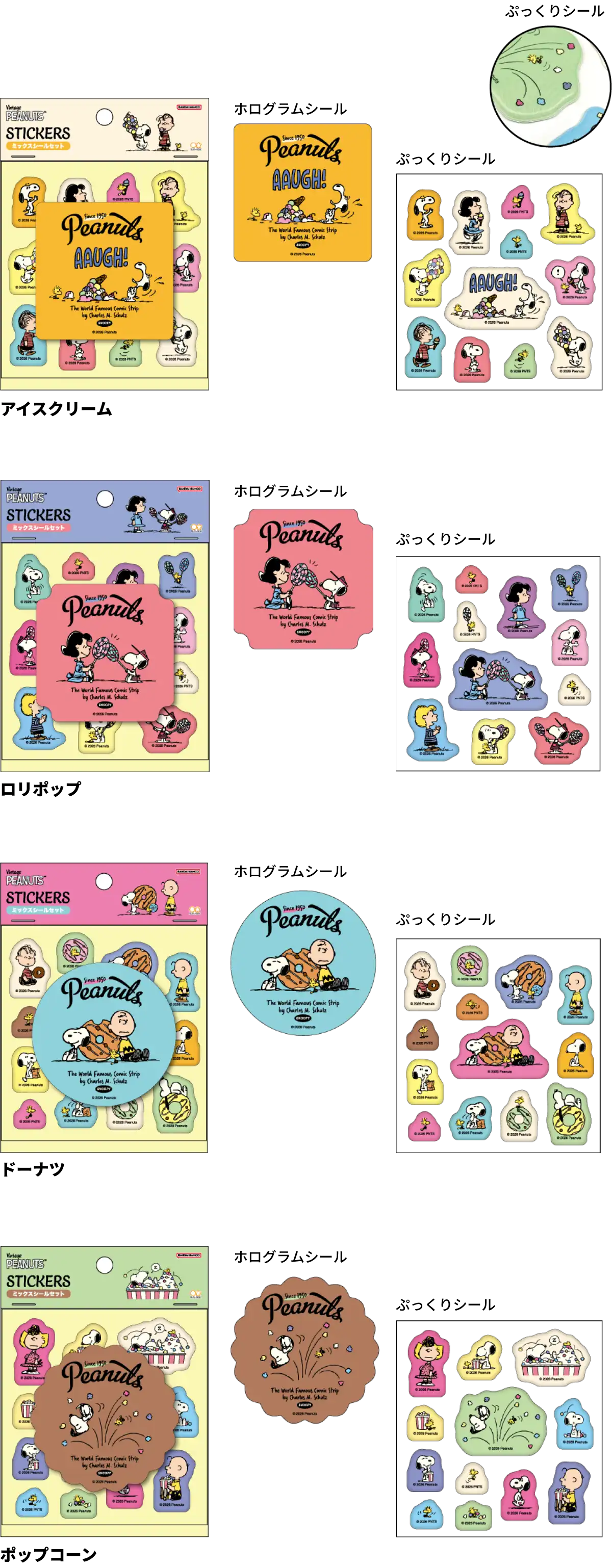 【シートサイズ】W99×H104mm 【材質】PET・PVC【内容】ホログラムシール:1ピース / ぷっくりシール:1シート 【パッケージ】ヘッダー付穴あきPP袋【パッケージサイズ】約W100×H140×D6mm 【パッケージ重量】約12g 【生産国】中国【JANコード】アイスクリーム:4901770048093 ロリポップ:4901770048109 ドーナツ:4901770048116 ポップコーン:4901770048123