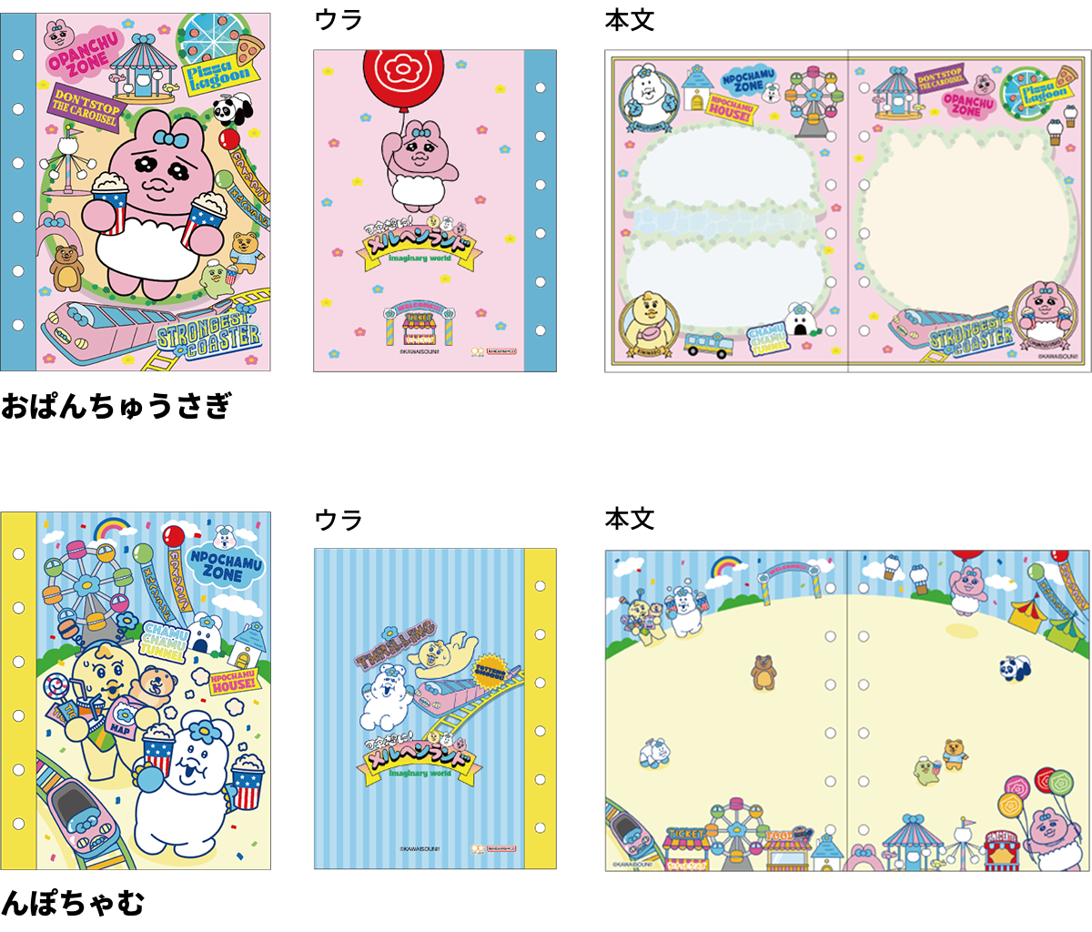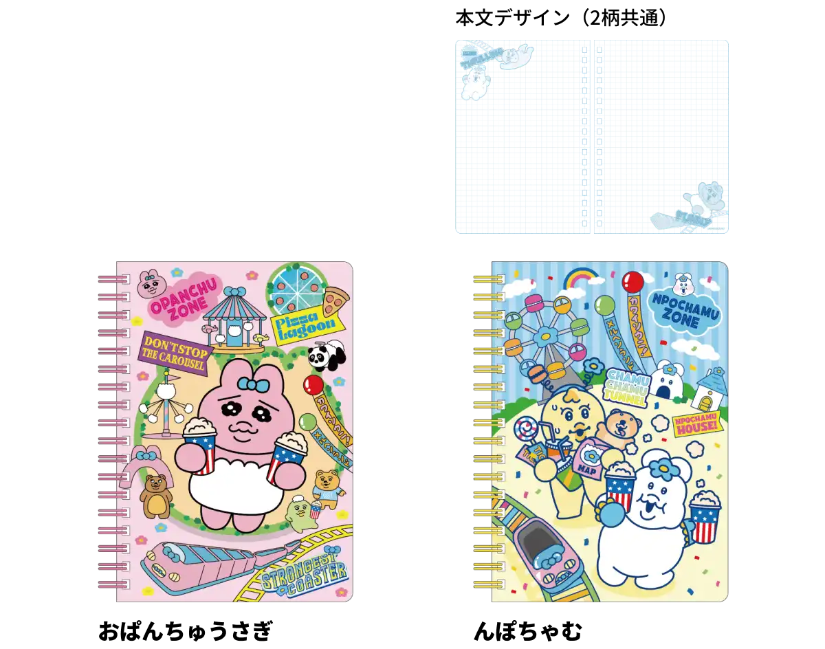 【本体サイズ】W135×H182×D15mm 【本体重量】190g 【材質】紙・スチール・PET 【内容】本文:70枚(140ページ)【パッケージ】なし 【生産国】日本【JANコード】おぱんちゅうさぎ:4901770053929 んぽちゃむ:4901770053936