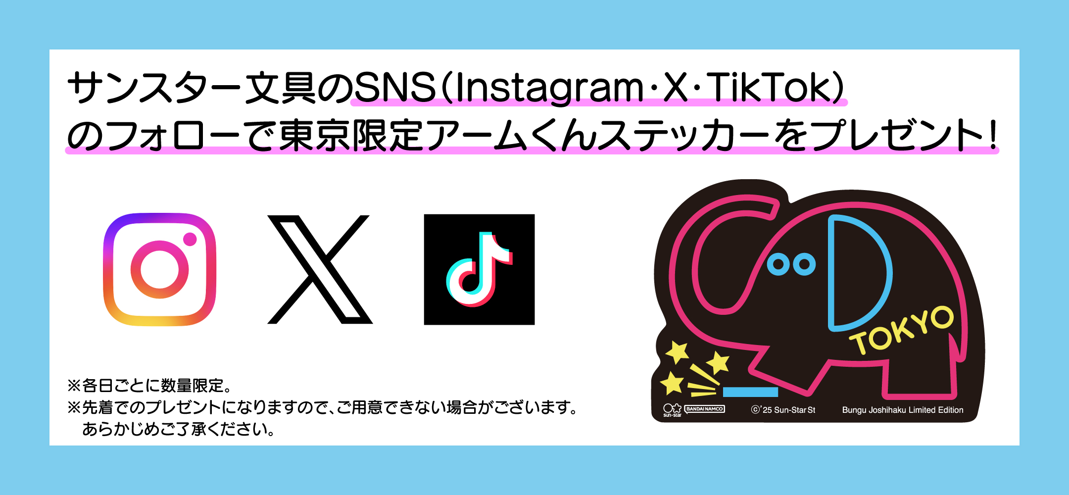 サンスター文具のSNSのフォロー画面を見せていただくとノベルティプレゼントします🎁