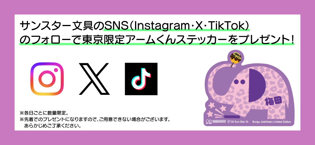 サンスター文具のSNSのフォロー画面を見せていただくとノベルティプレゼントします?