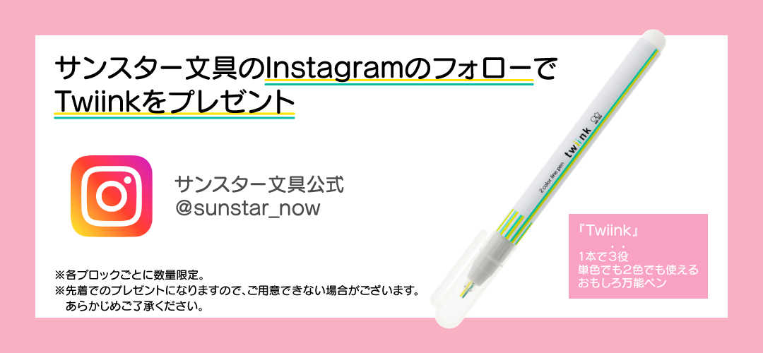 サンスター文具のインスタグラムのフォロー画面を見せていただくとノベルティプレゼントします?