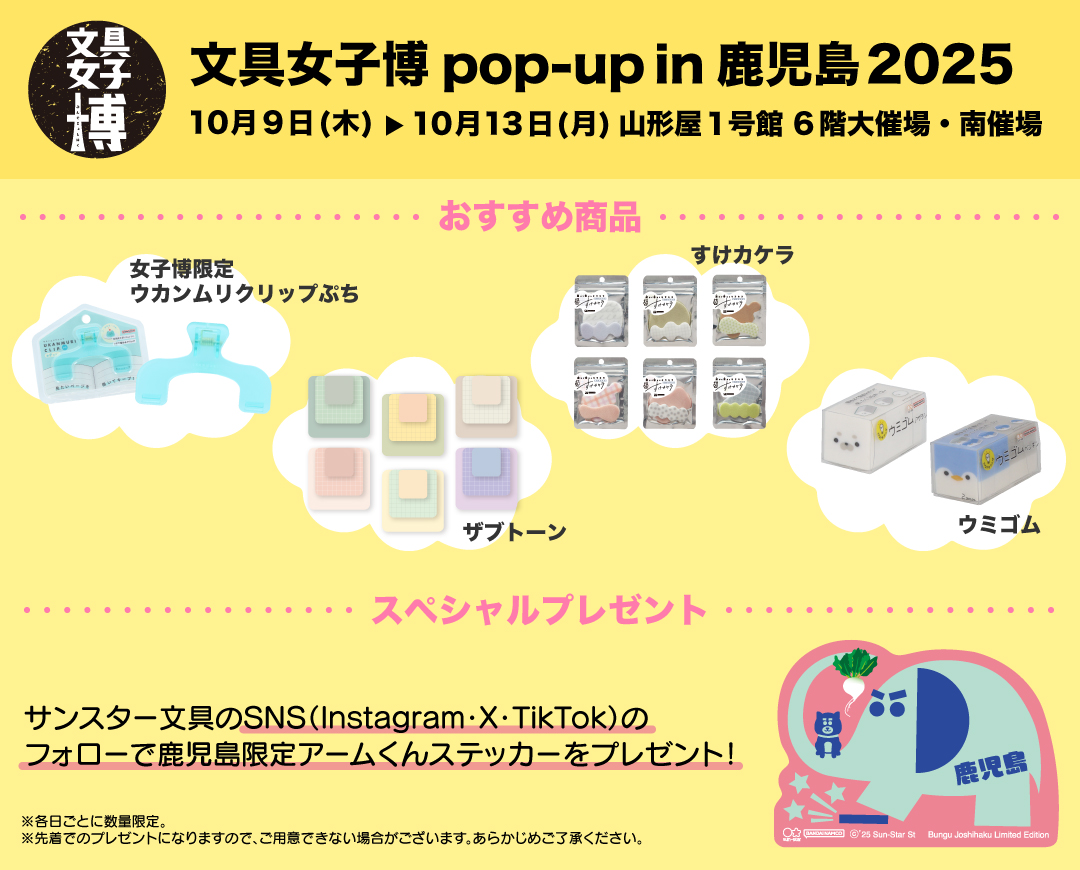 10月9日(木)〜10月13日(月)に開催される『文具女子博 pop-up in 鹿児島2025』に出展します!