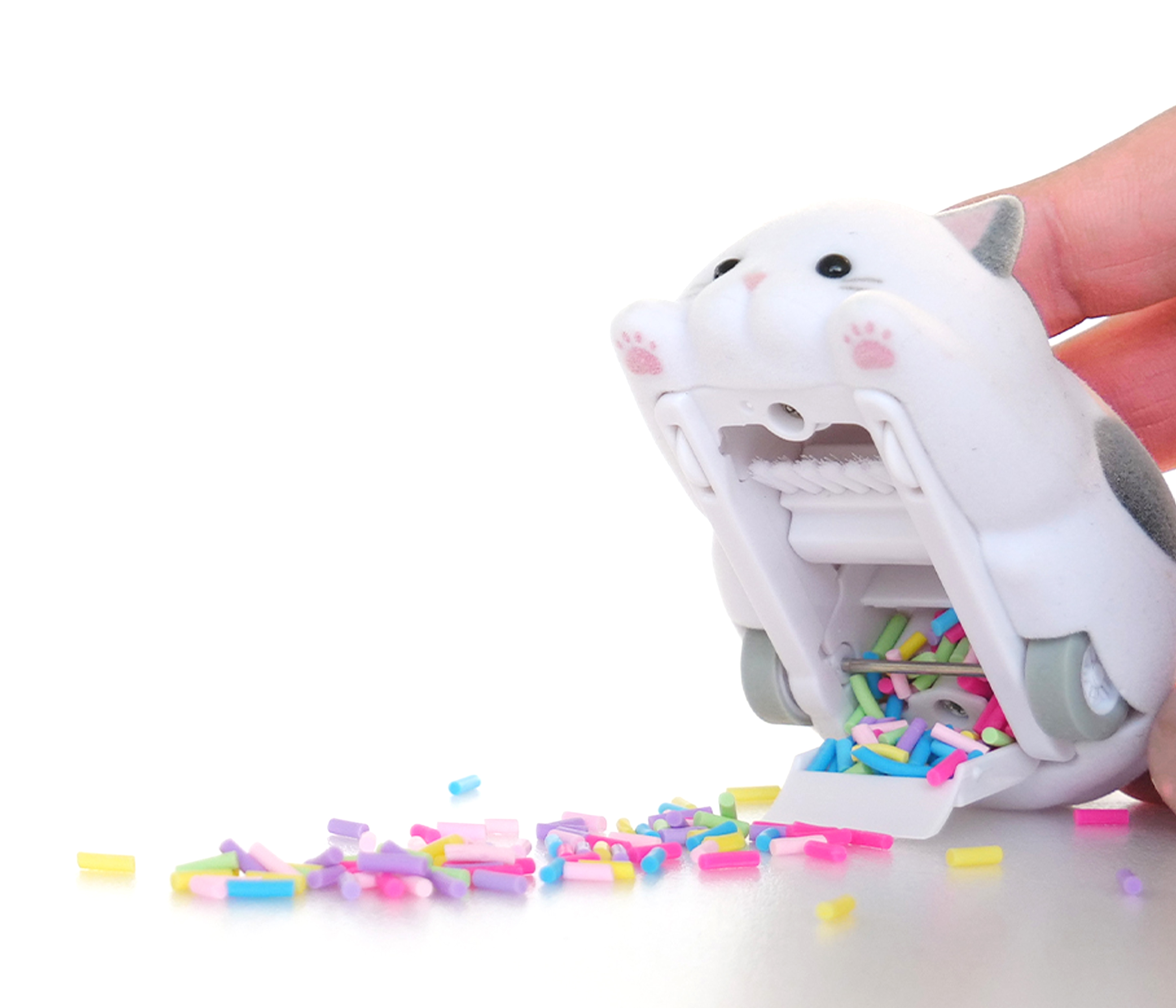走って小さなゴミをつかまえるニャン! デスク周りをきれいにお掃除できる 卓上クリーナー『もぐもぐズー ねこ』4月中旬より発売