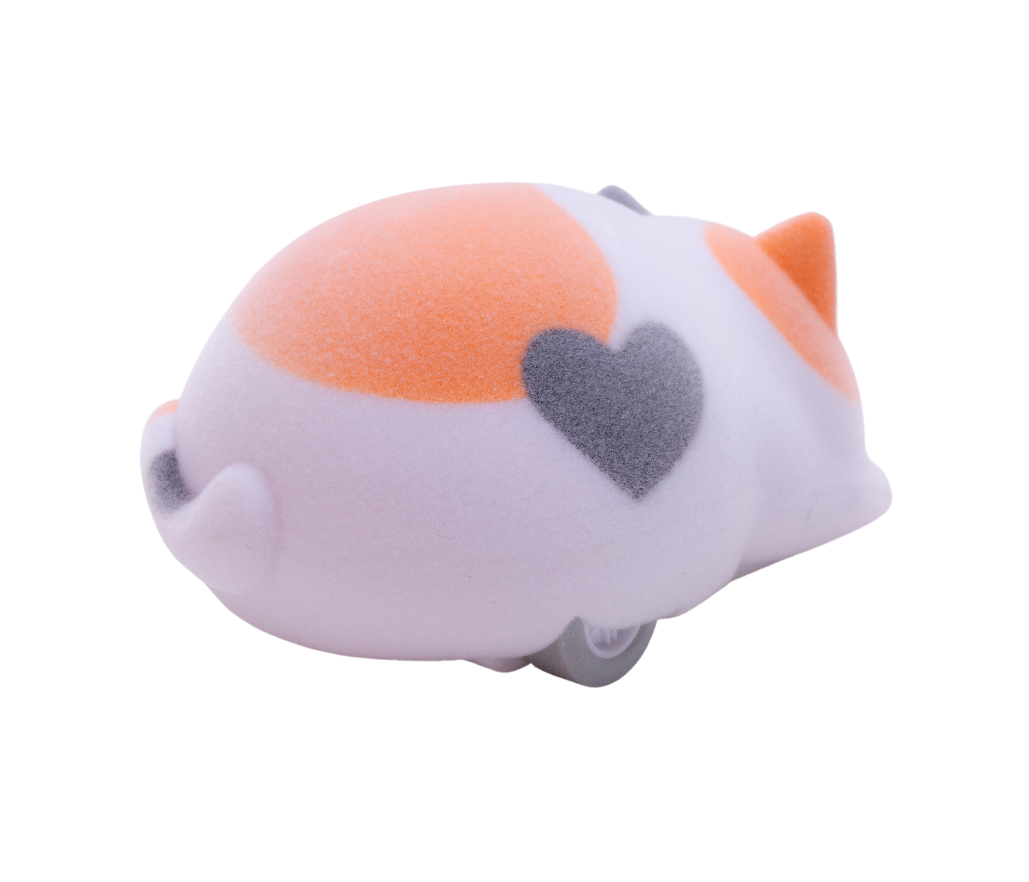 表面は、つい触りたくなるふわふわな素材のフロッキー加工が施されています。柄によって尻尾の向きが違ったり、ピンクの肉球もかわいいねこちゃんたちです。ミケ柄にはハートの模様がついており、細部までこだわったデザインです。