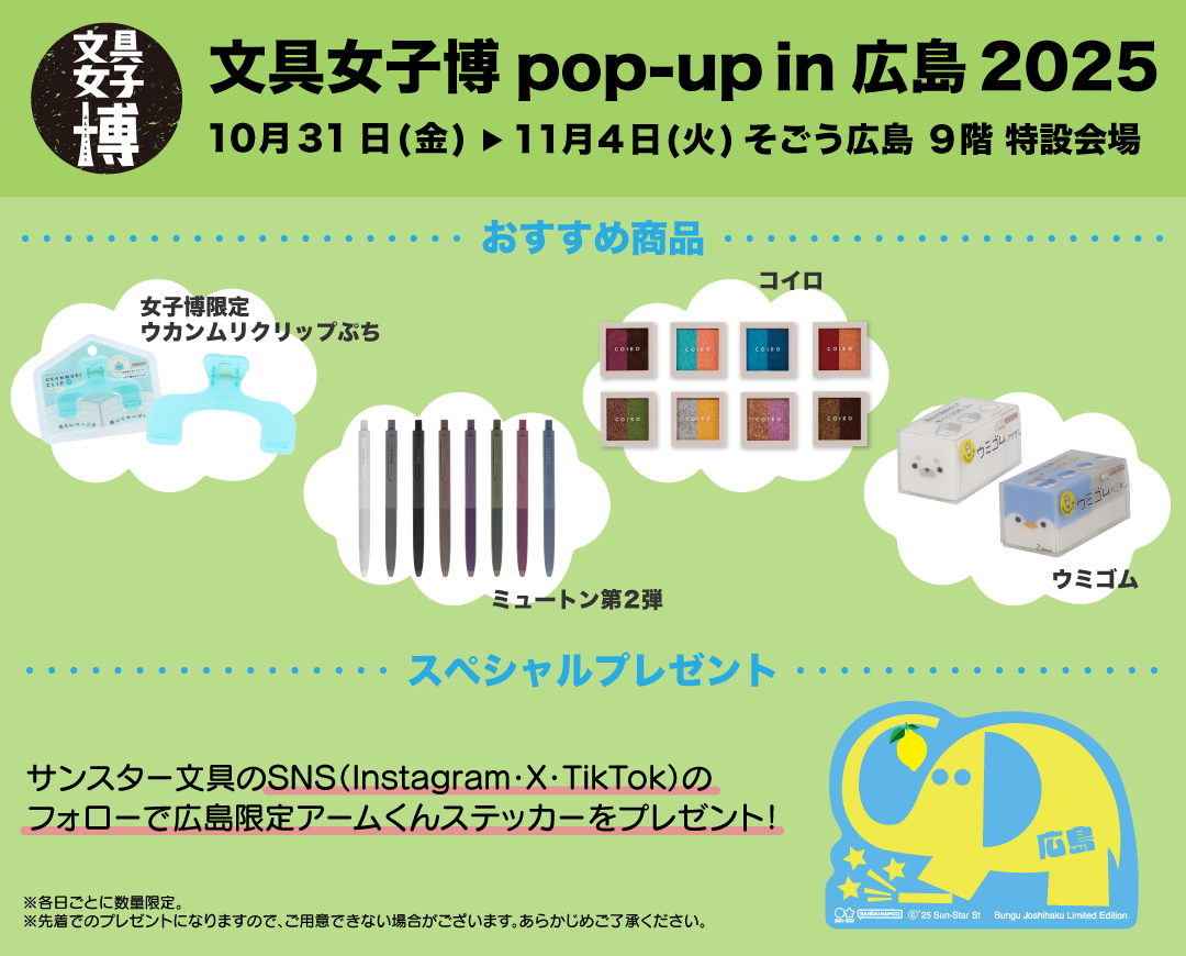 10月31日(金)〜11月4日(火)に開催される『文具女子博 pop-up in 広島2025』に出展します!